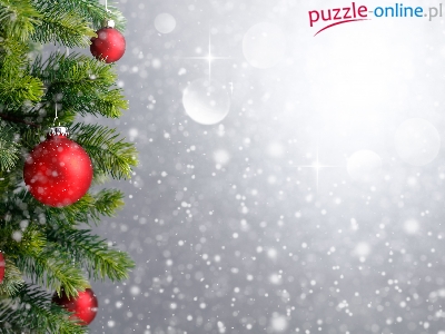 Puzzle Czerwone, Boże Narodzenie, Gałązki, Bombki