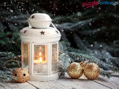 Bombki, Świerkowe, Boże Narodzenie, Lampion, Złote, Biały, Gałązki