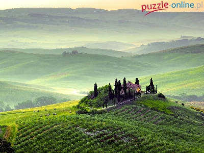 Drzewa, Dom, Włochy, Pole, Włochy, Toskania
