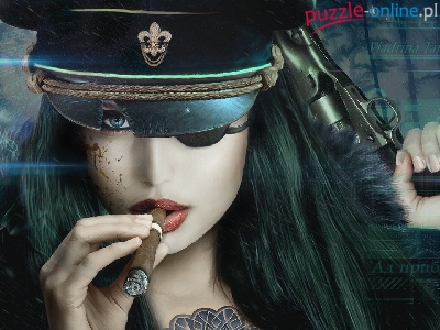 Pistolet, Grafika, Dziewczyna, Czapka, Cygaro