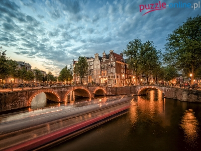 Amsterdam, Latarnie, Miasto, Most, Domy, Holandia, Rzeka, Poranek
