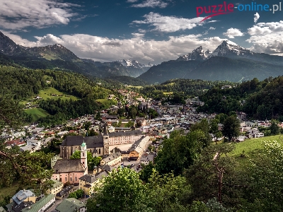 Bawaria, Chmury, Lasy, Berchtesgaden, Alpy Bawarskie, Niemcy, Góry, Domy
