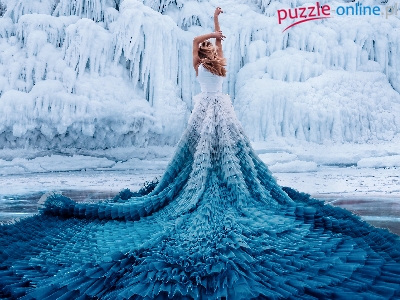 Zima, Biało-niebieska, Lodowe, Kobieta, Suknia, Sople