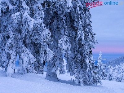Puzzle Drzewa, Śnieg, Zaśnieżone, Zima