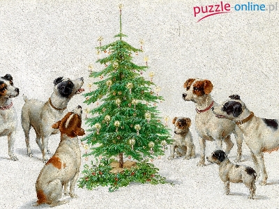 Malarstwo, Choinka, Karl Reichert, Psy, Boże Narodzenie, Obraz