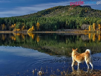 Góry, Lasy, Jezioro, Pies, Góra