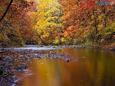 Drzewa, Rzeka, Jesień, Jesienne, Las