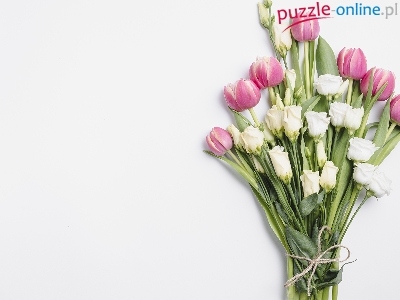 Tulipany, Bukiet, Eustoma, Kwiaty, Różowe, Biała