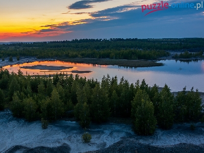 Puzzle Jezioro, Wschód słońca, Chmury, Lasy