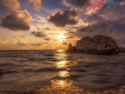 Puzzle Chmury, Morze, Skały, Wschód słońca