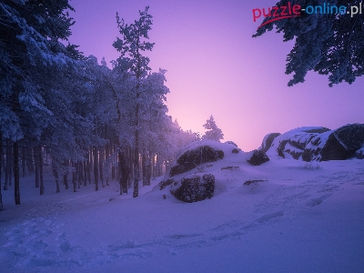 Ośnieżone, Kamienie, Zima, Las, Drzewa