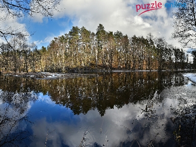 Åšnieg, Odbicie, Jezioro, Drzewa, Chmury