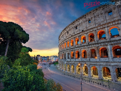 Amfiteatr, Rzym, Drzewa, Włochy, Koloseum, Ulica