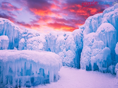 Lód, Kanada, Edmonton, Sople, Ice Castle, Zima, Lodowy zamek, Prowincja Alberta
