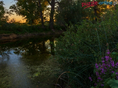 Puzzle Drzewa, Lato, Staw, Kwiaty