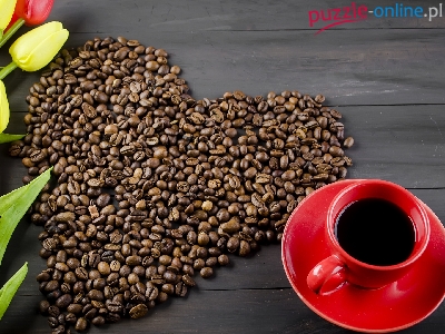 Ziarna, Serce, Tulipany, Czerwona, Spodek, Sztuczne, Kawa, Kwiaty, Filiżanka