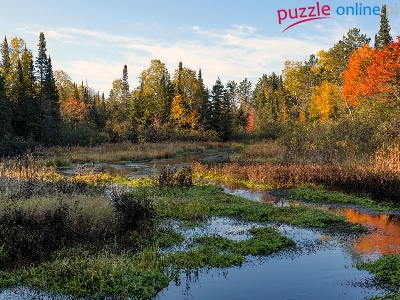 Drzewa, Jesień, Rzeka, Mokradła, Las