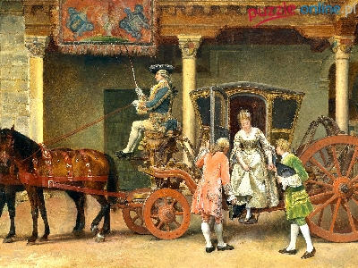 Ignacio Leon y Escosura, Obraz, Karoca, Woźnica, Mężczyźni, Konie, Malarstwo, Zaprzęg konny, Kobieta