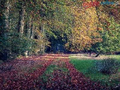 Drzewa, Liście, Trawa, Opadłe, Las, Ścieżka, Zielona