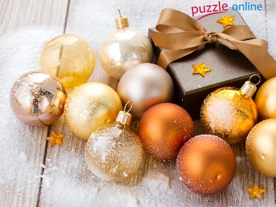 Puzzle Prezent, Bombki, Świąteczny, Pudełko