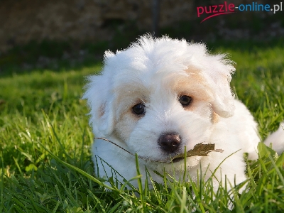 Szczeniak, Trawa, Pies, Biały, Golden retriever