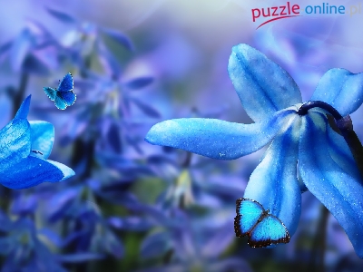 Cebulica, Niebieskie, Motyle, Kwiaty, Płatki, Dzwonek