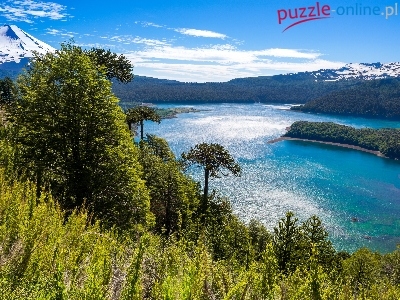 Puzzle Góry, Jezioro, Drzewa, Chile