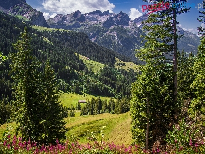 Alpy, Szwajcaria, Roślinność, Lasy, Świerki, Góry, Drzewa, Sanetschhore