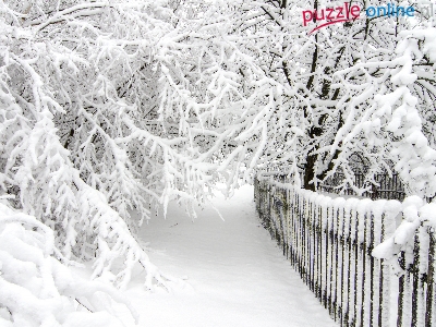 Drzewa, Płot, Zima, Śnieg, Gałęzie