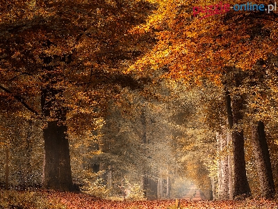 Las, Żółte, Droga, Liście, Jesień, Drzewa, Brązowe