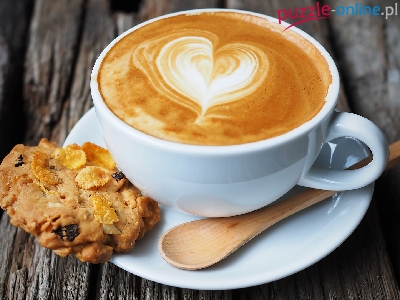 Cappuccino, Deski, Drewniana, Pianka, Ciasteczko, Kawa, Serce, Łyżeczka