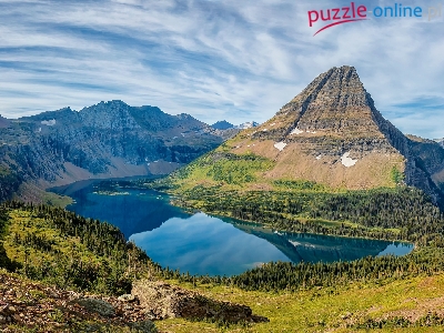 Góry, Stany Zjednoczone, Park Narodowy Glacier, Drzewa, Chmury, Jezioro Hidden Lake, Las, Stan Montana