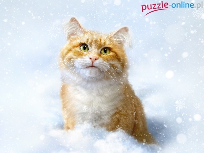 Puzzle Zima, Rudy, Kot, Śnieg