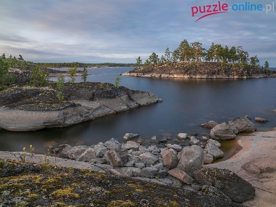 Drzewa, Skały, Jezioro, Wysepki, Kamienie