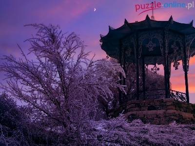 Puzzle Budowla, Ośnieżony, Krzew, Altana