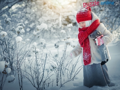 Czapka, Zima, Gałązki, Dziewczynka, Czerwona, Szalik