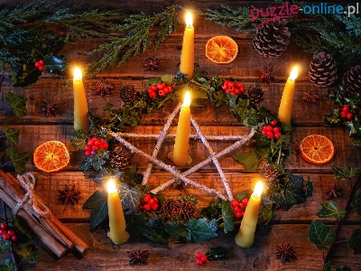 Wianek, Gałązki, Szyszki, Świece, Cynamon, Świąteczna, Pomarańcza, Jarzębina, Kompozycja, Gwiazda, Plasterki