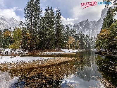 Rzeka, Stany Zjednoczone, Park Narodowy Yosemite, Tuolumne River, Góry, Zima, Drzewa, Kalifornia
