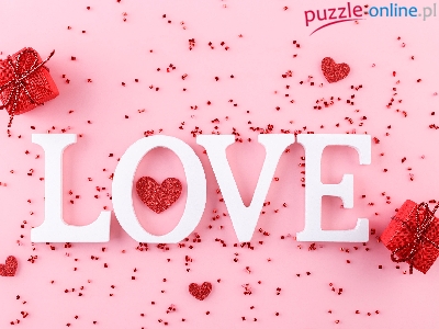 Love, Prezent, Tło, Serduszka, Napis, Różowe