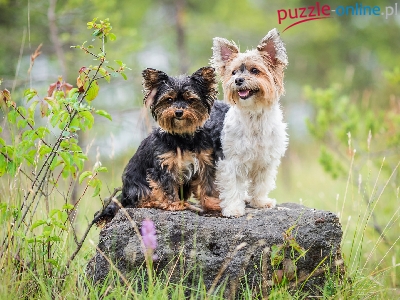 Puzzle Yorkshire terrier, Dwa, Psy, Kamień