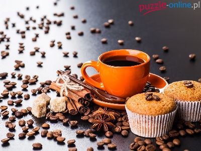Ziarna, Filiżanka, Babeczki, Kawa, Pomarańczowa