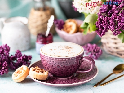 Filiżanka, Bez, Gofry, Kwiaty, Kawa, Małe