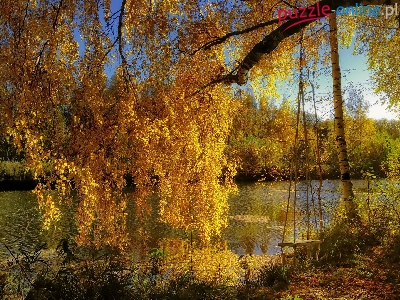 Puzzle Huśtawka, Rzeka, Brzoza, Jesień