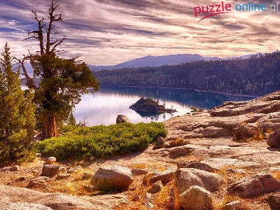 Lake Tahoe, Jezioro, Lasy, Drzewa, Stany Zjednoczone, Park Emerald Bay, Góry, Wyspa Fannette, Kalifornia