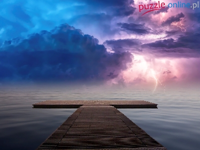 Chmury, Pomost, 2D, Morze, Niebo, Pioruny