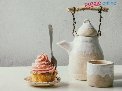 Herbata, Dzbanek, Widelec, Czajnik, Filiżanka, Babeczka