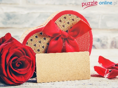 Róża, Walentynki, Serce, Pudełko, Czekoladki, Czerwona, Wstążka, Karteczka