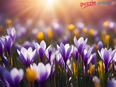Puzzle Kwiaty, Fioletowe, Krokusy, 2D
