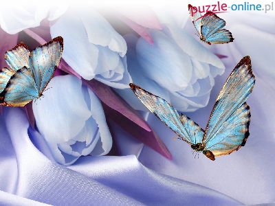 Puzzle 3D, Tulipany, Niebieskie motyle, Wektorowa
