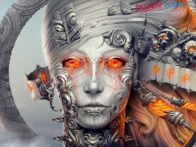 3D, Twarz, Grafika, Kobieta, Robot, Fantasy